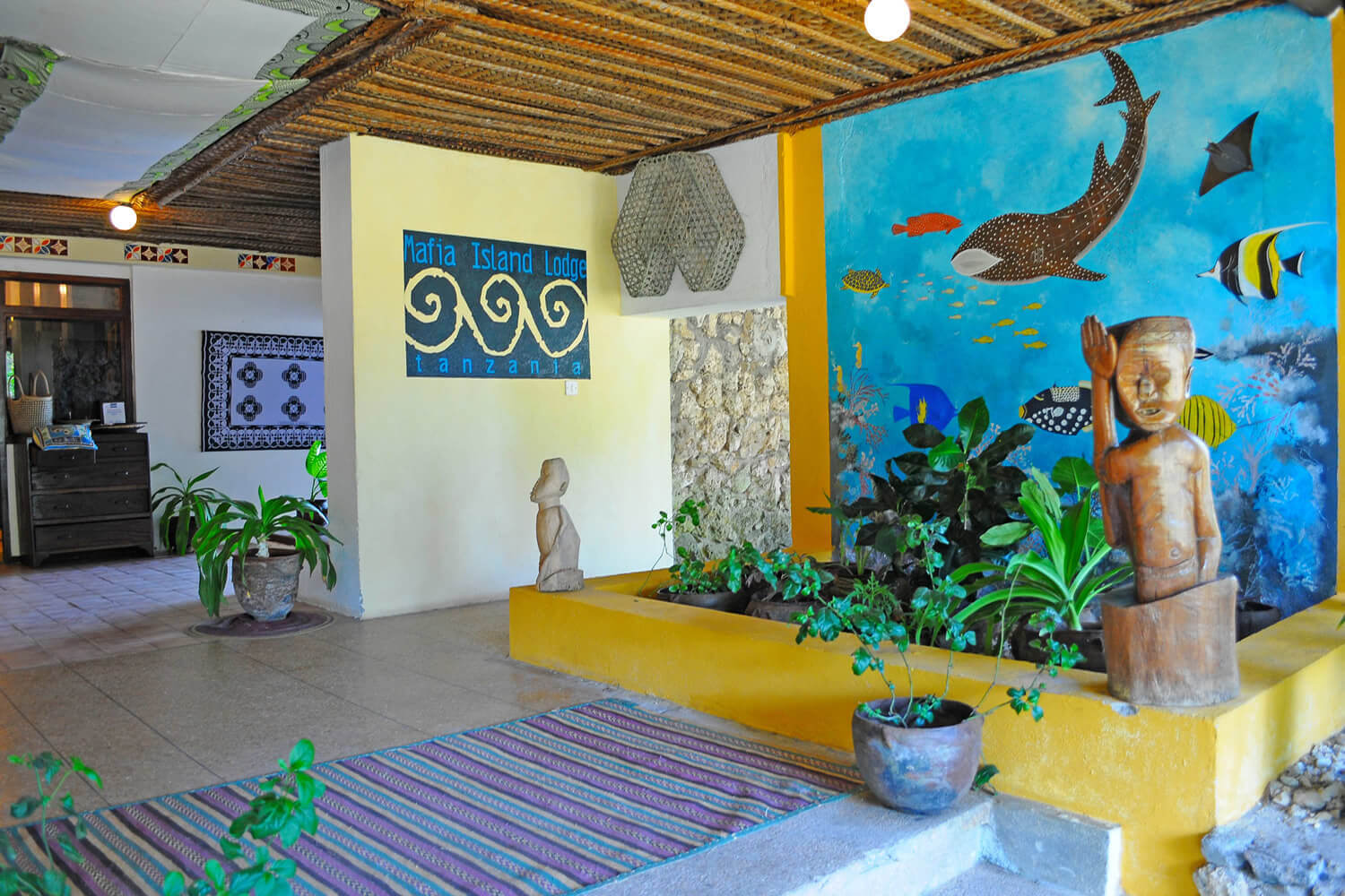 Mafia Island has wide-ranging beach accommodation, from Chole Mjini’s tree-house experience, Eco-Shamba Kilole Lodge, Butiama beach Hotel, Meremeta Bungalow Lodge, Kinasi Lodge’s stone walled cottages, Pole Pole’s rusting bungalow suites to Mafia Island Lodge’s values guest rooms